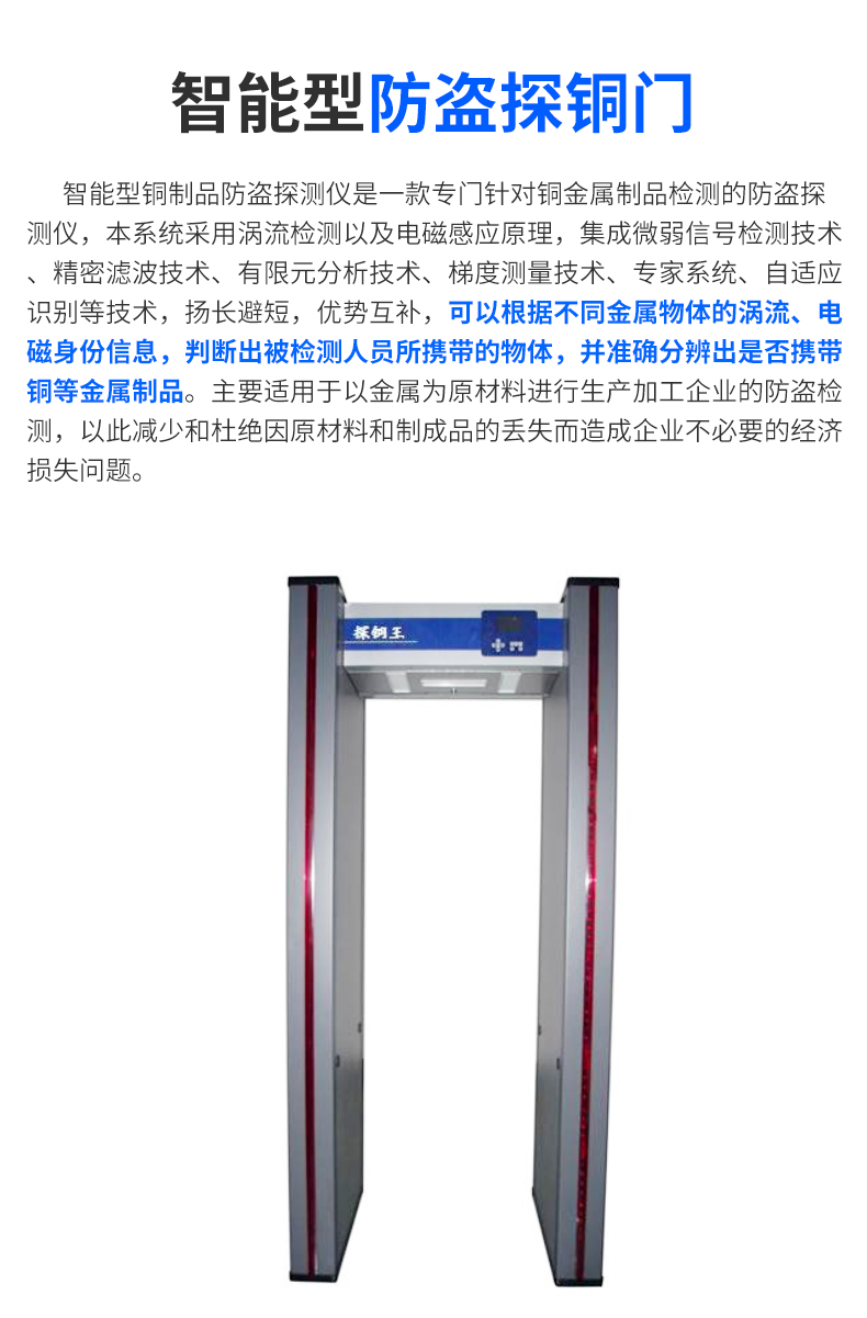 | 1 | 金屬分類檢測,可有效排除香煙、打火機、鑰匙、硬幣、皮帶、皮鞋、女士內衣鋼托等非銅金屬引起的誤報。(手機除外,如將鑰匙同時拿出,探測效果更準確、靈敏度更高) |